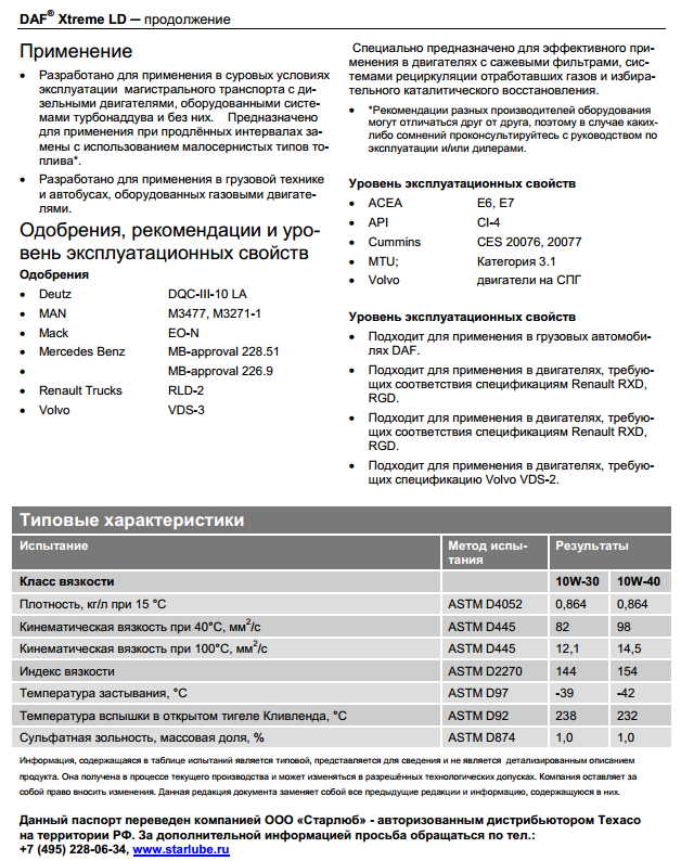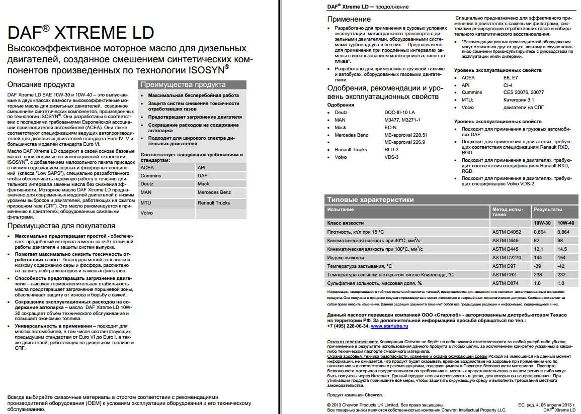 Масло моторное синтетическое DAF Xtreme LD 10W-40 (канистра 5л) (уже не поставляется в РФ)
