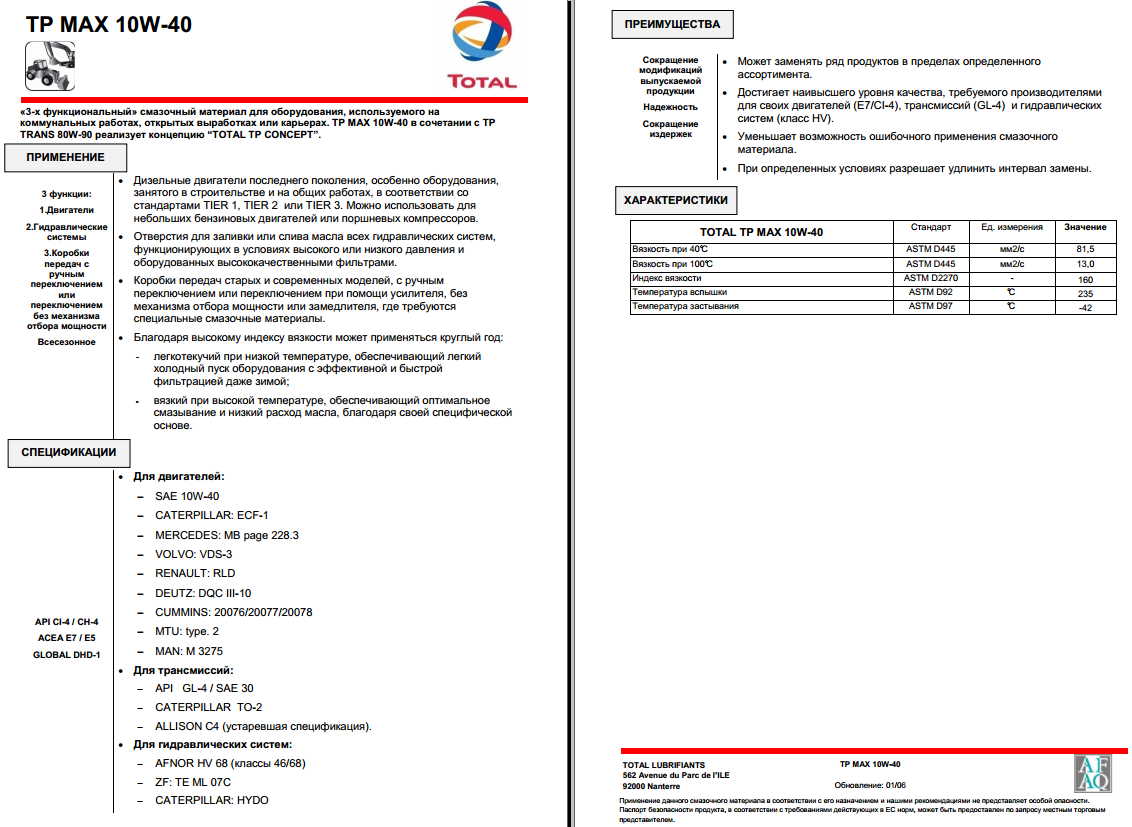 Масло моторное минеральное для тяжёлой техники TOTAL TP MAX 10W40 1L (на розлив)